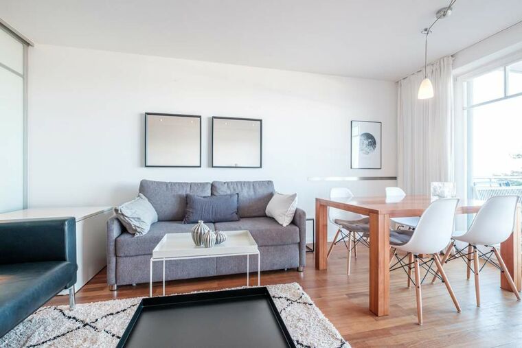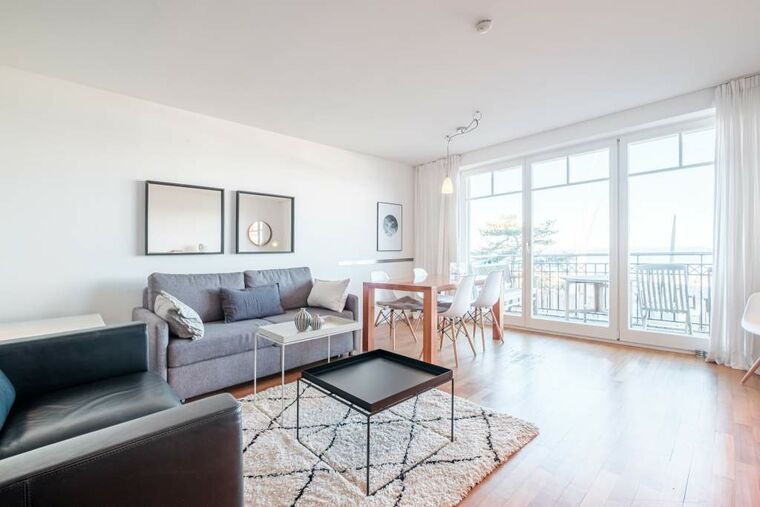 In diesem sehr modern eingerichteten Appartement erwartet Sie ein traumhafter Meerblick! Die Niendorf Ferienwohnung Sunrise ist für maximal 4 Personen ausgestattet. Das Wohnzimmer ist mit einem großen Couchbereich, der gleichzeitig einen Schlafplatz für 2 Personen bietet, einem Flatscreen-TV mit DVD-Player, sowie einer Stereo-Anlage mit Radio eingerichtet.
