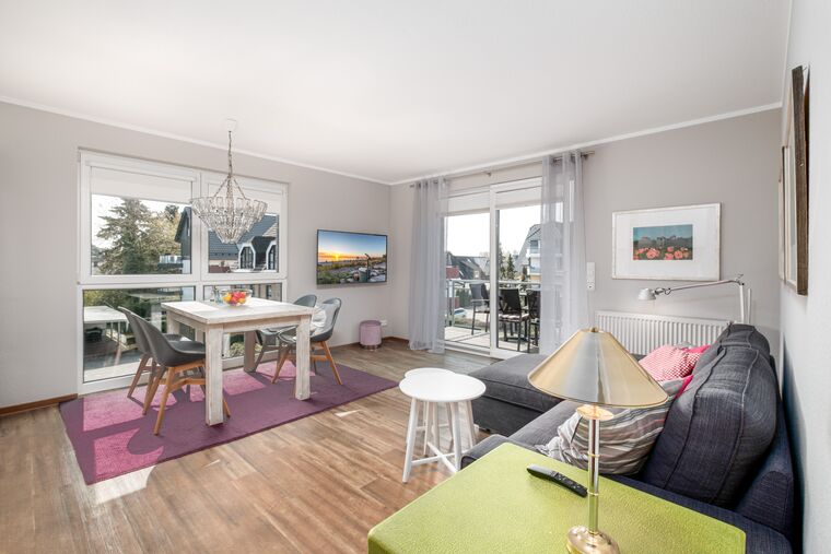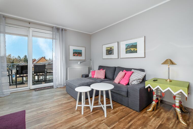 Die zwei Balkone (der größere Balkon in West-Lage mit Zugang vom Wohnzimmer) runden dieses liebevoll eingerichtete Urlaubsdomizil ab.