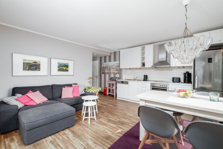 Ebenso ist ein Tiefgaragen Stellplatz im Mietpreis enthalten (Einfahrtshöhe ca. 2,0m). Im Haus steht unseren Urlaubsgästen eine kostenlose Waschmaschine zur Verfügung.
