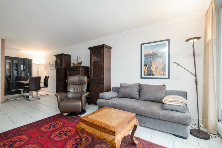 Das 2-Zimmer-Appartement ist ca. 77qm groß und komfortabel für 3 Personen ausgestattet. In der Timmendorfer Strand Ferienwohnung erwartet Sie ein Wohnzimmer mit Schlafcouch (120x170cm), Flatscreen-TV, CD-Player und Essecke. Eine komplett eingerichtete Einbauküche mit Backofen, DolceGusto-Maschine, Ceranfeld und Geschirrspüler ist ebenso vorhanden wie ein Badezimmer mit Dusche und eigener Waschmaschine.