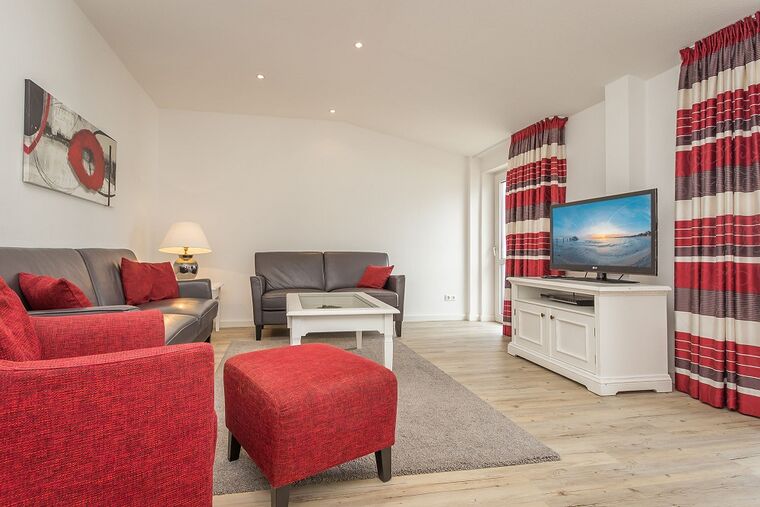 Diese komplett renovierte und zeitgemäß eingerichtete Timmendorfer Strand Ferienwohnung ist 110qm groß, liegt in der 2.Etage mit großem Balkon in Süd-/Westlage und ist für maximal 4 Personen ausgestattet. Die Ferienwohnung verfügt über ein großes Wohnzimmer mit Couchgarnitur, Flatscreen-TV und Essecke im Erker, ein großes Badezimmer mit Eckbadewanne und Dusche, ein Gäste-WC, die separate und komplett eingerichtete Küche mit Cerankochfeld, Backofen, Mikrowelle und Geschirrspüler und die großzügige Diele. Die beiden separaten Schlafzimmer dieser Ferienwohnung sind jeweils mit einem Doppelbett (180x200cm) eingerichtet. Das Schlafzimmer I verfügt zusätzlich über einen Flatscreen-TV. Der große und möblierte Balkon in Süd-Westlage runden diese sehr moderne Ferienwohnung Timmendorfer Strand ab.