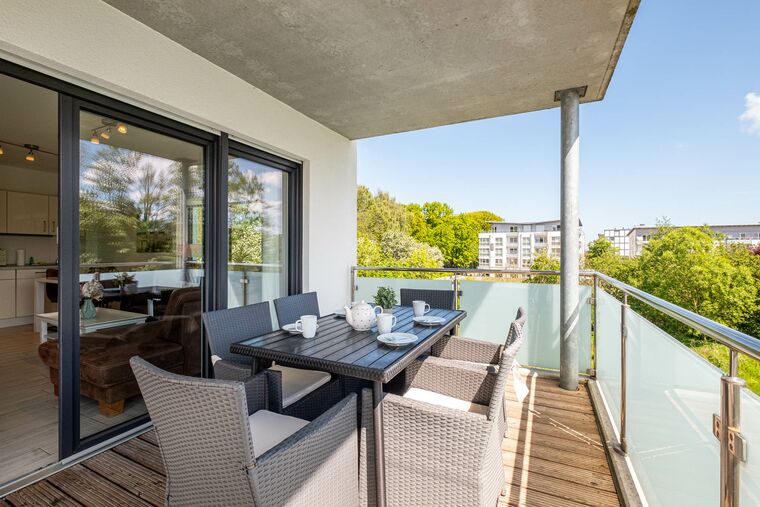 Diese Scharbeutz Ferienwohnung ist mit 2 separaten Bädern ausgestattet. Ein Badezimmer ist mit einer Dusche eingerichtet, das andere Badezimmer verfügt über eine Badewanne. Der möblierte und große Balkon in Süd-Lage bietet Platz für entspannte Stunden mit der Familie und rundet dieses wunderschöne Urlaubsdomizil im Zentrum von Scharbeutz ab.