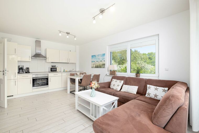 Dieses wunderschöne und neue 3-Zimmer-Appartement Strandzeit #4 verfügt über 2 separate Schlafzimmer und bietet Platz für maximal 4 Personen. Das Wohnzimmer ist mit einem Flatscreen-TV, der gemütlichen Couchgarnitur, einem Essbereich sowie der Küche mit den modernsten Geräten, wie Backofen, Ceranfeld, Geschirrspüler und Mikrowelle ausgestattet.