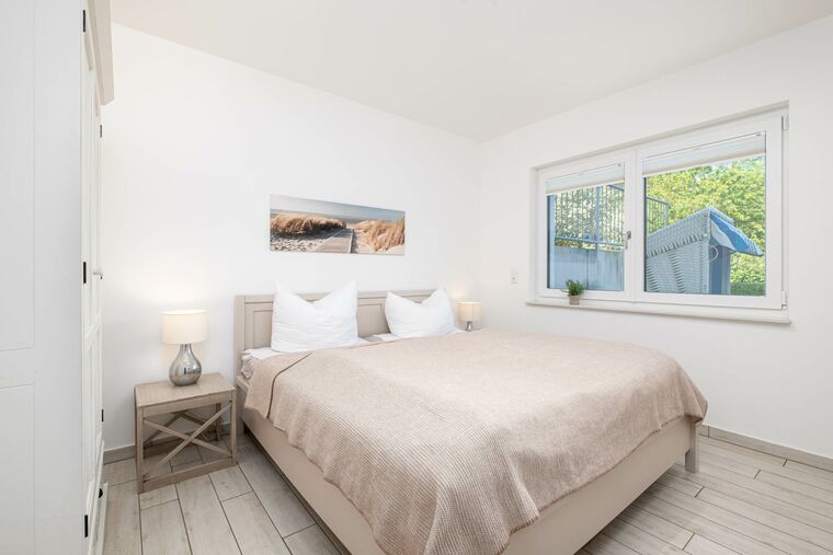 Diese Scharbeutz Ferienwohnung verfügt über 2 separate Schlafzimmer. Beide Schlafzimmer sind mit einem Doppelbett (180x200cm) sowie einem Kleiderschrank eingerichtet. Das Schlafzimmer I besitzt zusätzlich einen weiteren Flatscreen-TV. Die 5. Person kann auf der Schlafcouch im Wohnzimmer übernachten.