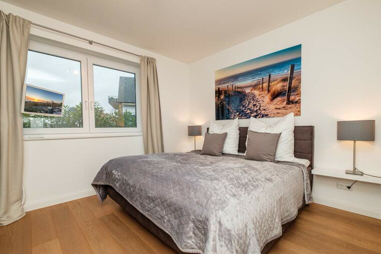 Das Elternschlafzimmer dieser Ferienwohnung ist mit einem hochwertigen Doppel-Boxspringbett (180x200cm), einem großen Schwebetüren Kleiderschrank, Nachtkonsolen und einem Flachbild-TV ausgestattet. Im Wohnzimmer genießen Sie nicht nur den Fernsehton über eine BOSE 2.1 Soundanlage in hoher Qualität, sondern auch ihre über Ihr Smartphone einzuspielende Entspannungsmusik. Falls es doch mal regnet bietet ein BlueRay/DVD/CD Player sich zur Unterhaltung an.