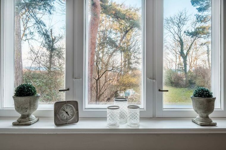 Aus dem Wohnbereich blicken Sie durch die große Fensterfront in den Gemeinschaftsgarten und auf die Ostsee - gerne könnt ihr den Blick auf der Terrasse Richtung Meer noch weiter schweifen lassen!