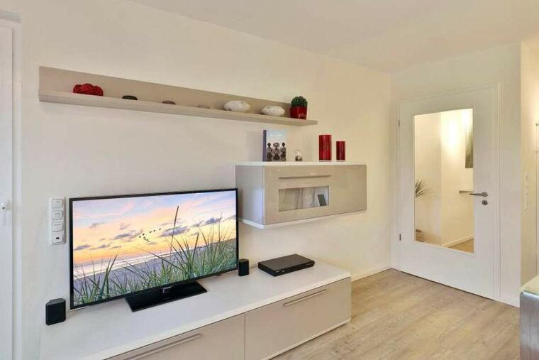 Diese geschmackvoll eingerichtete Ferienwohnung bietet Ihnen einen gemütlichen Wohn-Essbereich. Die Couch und der Esstisch laden Sie zu gemütlichen Abenden ein. Neben dem Flachbildfernseher und dem DVD-Player steht Ihnen ein CD-Player zur Verfügung. Kostenloses WLAN ist selbstverständlich. Der überdachte Balkon ist mit Tisch und Stühlen ausgestattet und lädt Sie auf einen Sundowner in der Nachmittag- und Abendsonne ein. Die moderne Küche ist komplett ausgestattet. In beiden Schlafzimmern stehen ein bequemes Doppelbett (1,80 x 2,00m) und ein geräumiger Schrank. Sie sind mit Flachbildfernsehern und Verdunkelungsplissees ausgestattet. Das Badezimmer verfügt über eine bodentiefe Dusche und eine Waschmaschine. Neben der Fußbodenheizung ist hier ein zusätzlicher Handtuchheizkörper angebracht.