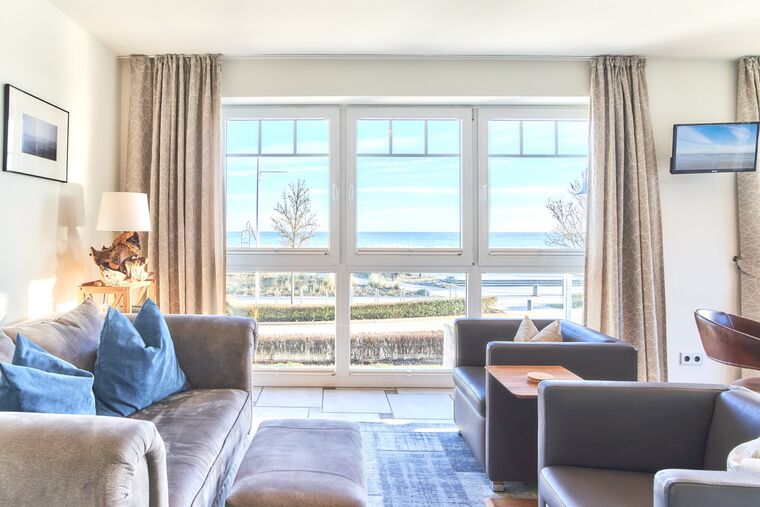 Helle 3-Zimmer-Ferienwohnung, ca. 70 m², mit Meerblick, Balkon, Tiefgaragenstellplatz (Durchfahrtshöhe 2,08 m), Fahrstuhl, für bis zu 3 Personen