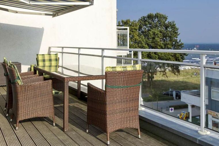 Die Wohnung mit halbumlaufender, großer Dachterrasse der Strandvilla Meerblick hat durchaus Penthouse-Charakter. Diese Ferienwohnung liegt gegenüber dem schönen Strand von Scharbeutz, nur wenige Gehminuten von der Dünenmeile entfernt. Der Tiefgaragenstellplatz sorgt für eine sichere Unterbringung Ihres Autos. Fahrräder und Surfbretter können hier in einem abschließbaren Raum untergebracht werden. Im Keller stehen Ihnen für diese Ferienwohnung Waschmaschine und Wäschetrockner zur Verfügung. In der Strandkorbsaison (15.05. – 15.09.) steht Ihnen für die Zeit Ihres Aufenthaltes ein kostenloser Strandkorb zur Verfügung. Ein Kinderreisebett und ein Hochstuhl stehen, bei Bedarf, für Ihr Kind bereit.