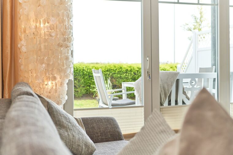Der Wohn-Essbereich ist mit einem Esstisch und einer Couch ausgestattet, die sich mit nur wenigen Handgriffen in eine Schlafcouch umwandeln lässt. Neben einem Flachbildfernseher, einem DVD-Player und einer Stereoanlage steht Ihnen selbstverständlich kostenloses WLAN zur Verfügung. Die Terrasse Richtung Osten ist mit einem Tisch, Stühlen, einer Bank und einem Sonnenschutz ausgestattet. Die helle Küche lässt keine Wünsche offen. Im Schlafzimmer stehen ein Flachbildfernseher, ein bequemes Doppelbett (1,80 x 2,00m) und ein geräumiger Kleiderschrank. Zur Verdunkelung sind elektrische Rollläden angebracht. Das helle Bad verfügt über eine bodentiefe Dusche und ausreichend Ablageflächen. Neben der Fußbodenheizung befindet sich hier ein zusätzlicher Handtuchheizkörper.