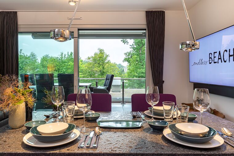Freuen Sie sich auf eine exklusive Design-Ferienwohnung mit einer besonderen Wohlfühlatmosphäre. Das abgestimmte Wohnraumkonzept von COR, USM, VITRA und JAB wird mit einem Wellnessbereich von Villeroy & Boch abgerundet. Das warme Lichtkonzept des Hauses Prediger setzt die originalen Acrylgemälde und weitere geschmackvolle, naturbelassene Dekorationen ins richtige Licht und schafft eine stimmungsvolle Atmosphäre. Wohn-Ess-Bereich: Genießen Sie Ihr Frühstück oder andere kulinarische Höhepunkte in der hochwertigen Warendorf-Küche mit Miele-Einbaugeräten, einer Nespresso-Maschine sowie stylischem Rosenthal-Porzellan. Es erwarten Sie Design-Klassiker von USM Haller (Esstisch, Vitrine und TV-Board) und COR (Ledersofa, Lounge-Chair, Esstisch-Stühle mit bequemer Polsterung und Couchtisch). Ein Samsung 65″-Smart-TV inkl. Soundbar mit LAN und kostenloses, unbegrenztes Highspeed-WLAN stehen Ihnen für Entertainment und digitales Erleben zur Verfügung.