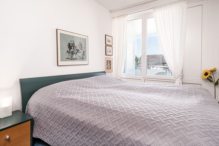 Im separaten Schlafzimmer finden bis zu 2 Personen im großzügigen Doppelbett einen Schlafplatz. In der voll ausgestatteten Einbauküche finden Sie mit einem Geschirrspüler, Mikrowelle und Kaffeemaschine alles Nötige zum Zubereiten leckerer Gerichte.