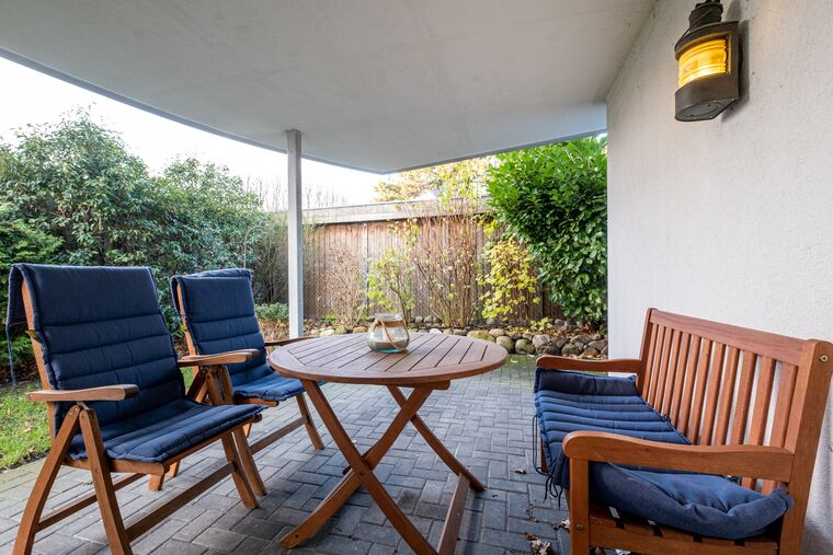 Im 43m² großen und modern ausgestatteten 2-Zimmer Niendorf Appartement Nr. 1 wohnen bis zu 3 Personen im Erdgeschoss mit teilweise überdachter, großer Terrasse.