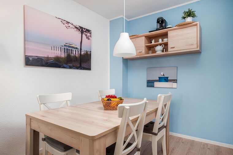 Das für bis zu drei Personen komfortabel ausgestattete 50m² große 2-Zimmer Appartement Nr. 16 in der Strandstraße 120 in Timmendorfer Strand / Niendorf an der Ostsee besteht aus einem Wohnzimmer mit Schlafcouch und einer Essecke sowie einem Kabel-TV mit Blu-Ray-Player und Radio. Im Schlafzimmer finden bis zu zwei weitere Personen einen gemütlichen Schlafplatz im großen Doppelbett.
