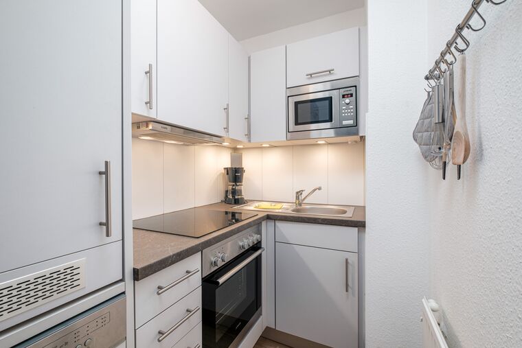 Die separate, modern eingerichtete Küche ist mit Backofen, Geschirrspüler, Mikrowelle und Filterkaffeemaschine sehr gut ausgestattet.