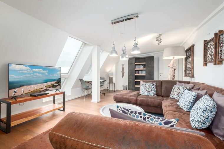 Die luxuriöse Wohnung "Sonnendeck" liegt in der Strandstraße 138 in Timmendorfer Strand / Niendorf an der Ostsee. Sie ist 187m² groß und befindet sich im 3. OG des Appartementhauses, welches Sie bequem mit dem Aufzug erreichen. Es ist eine sehr schöne, moderne Maisonette-Wohnung, die für bis zu 8 Personen und mit Parkett und Fußbodenheizung ausgestattet ist.