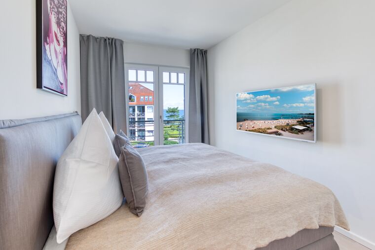 Alle Schlafzimmer in diesem Appartement verfügen über Verdunklungsmöglichkeiten und jeweils einen eigenen TV! Von jedem Schlafplatz aus können Sie auf die Ostsee blicken.