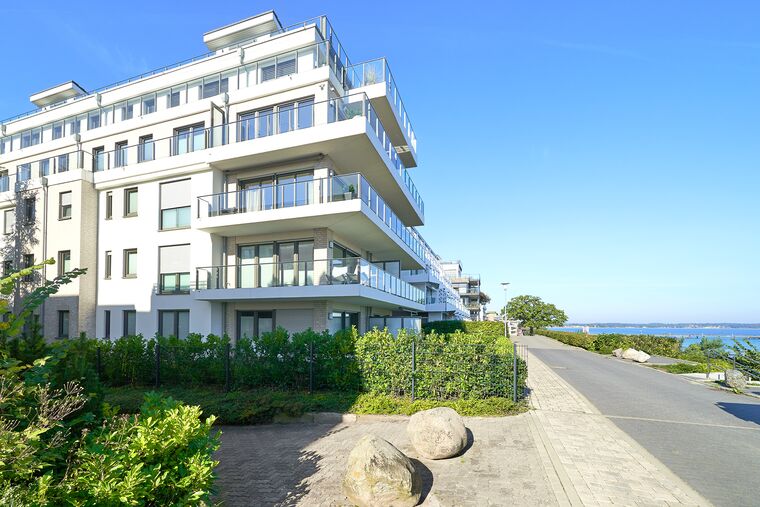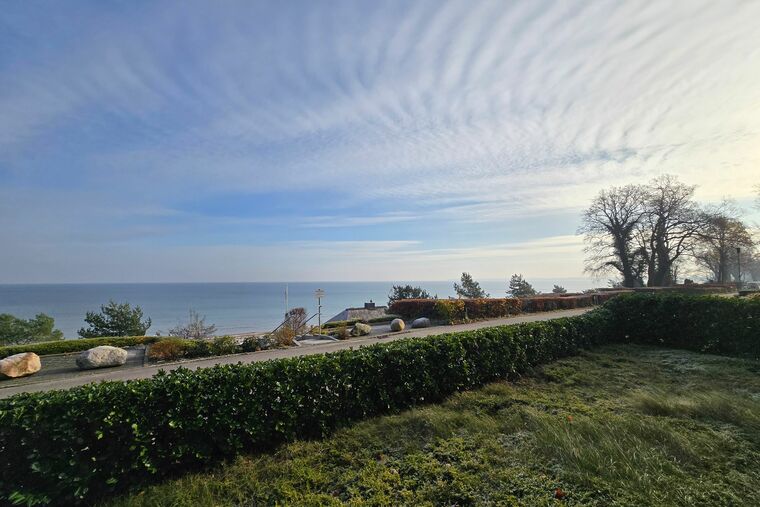 Die vorgelagerte, zur Seeseite ausgerichtete Terrasse ist teilweise überdacht und bietet von früh bis spät einen stilvollen Platz, um den Urlaub in vollen Zügen zu genießen. Das moderne Design und der beeindruckende Panorama-Meerblick schaffen ein exklusives Ambiente, das zum Verweilen einlädt. Ein Terrassenheizstrahler sorgt zu jeder Tageszeit für angenehme Wärme und ermöglicht entspannte Stunden im Freien – auch bei frischer Brise oder kühleren Temperaturen. Im eigenen Strandkorb können Sie entspannte Stunden mit Blick auf die Ostsee verbringen – der perfekte Ort, um den Tag stilvoll ausklingen zu lassen.