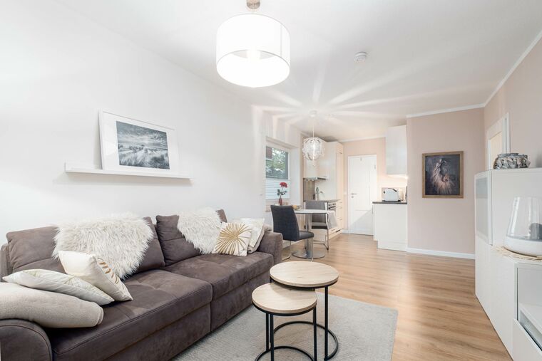 Das charmante und in harmonischen Farben aufeinander abgestimmte 2-Zimmer Appartement „Goldsand“ ist für bis zu 3 Erwachsene ausgestattet und bietet alles, was Sie für einen entspannten Aufenthalt an der Ostsee brauchen. Auch ein Hund ist hier herzlich willkommen, sodass die ganze Familie gemeinsam Urlaub machen kann.