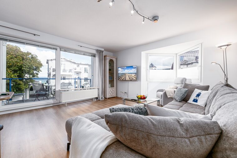 Das in 2025 renovierte und neu möblierte 2-Zimmer Appartement liegt im 2. Obergeschoss des Hauses und bietet auf 52m² Wohnfläche viel Platz für bis zu 4 Personen. Als Highlight gehört zu der Ferienwohnung ein Balkon mit Meerblick, der zum Verweilen und Entspannen einlädt.