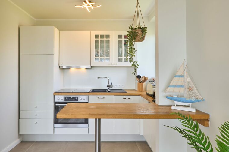 Diese sehr ansprechende Ferienwohnung bietet Ihnen einen gemütlichen Wohn-Essbereich. Genießen Sie den Blick auf die Ostsee schon vom Esstisch aus. Die Couch lässt sich mit nur wenigen Handgriffen in eine bequeme Schlafcouch verwandeln. Neben dem Smart TV steht Ihnen selbstverständlich kostenloses WLAN zur Verfügung. Der überdachte Balkon mit Blick auf die Ostsee ist mit Tisch und Stühlen ausgestattet. Die feine Küche ist u.a. mit einer Filterkaffeemaschine, Wasserkocher, Toaster ausgestattet.