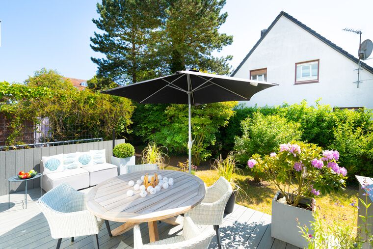 Ein Highlight dieses schönen Niendorf/Ostsee Ferienappartements ist die große, nach Osten ausgerichtete und in 2021 modern gestaltete Terrasse. Hier stehen Ihnen ein großer Tisch mit Stühlen sowie Loungemöbel zur Verfügung. Neben einer Ablagebox für Ihre Strandutensilien wurde auch an eine extra Lagermöglichkeit für ein SUP-Board oder Surfbrett gedacht.