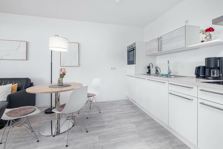 Von dem Wohnzimmer und dem Balkon aus blicken Sie sogar auf die schöne Lübecker Bucht der Ostsee. Im großen lichtdurchfluteten Wohnraum finden Sie ein bequemes Sofa, eine Essecke sowie einen Flatscreen-TV und Hifi-Anlage. Die integrierte Einbauküche ist sehr gut ausgestattet und lädt zu ausgiebigen Kochsession's ein.