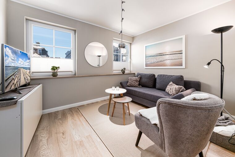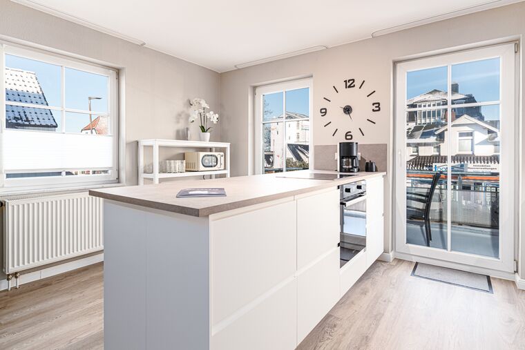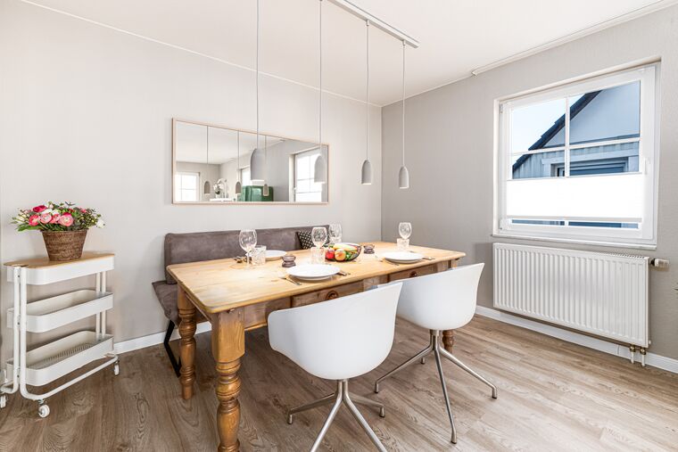 Auf ganzen 80m² wohnen bis zu 5 Personen in diesem modern eingerichteten und in 2026 frisch renovierten Niendorf Ferienappartement im 1. OG. Das separate Wohnzimmer verfügt über einen bequemen Sitzbereich für gemeinsame und erholsame Urlaubsabende. Das Highlight der Wohnung ist der große Küchen- und Wohnbereich mit großzügiger Essecke, wo auch ausgelassene Spieleabende mit der ganzen Familie besonders viel Spaß bringen. Von hier aus gelangen Sie auch auf den möblierten Balkon, wo sich ein neuer Urlaubstag bei einem ausgiebigen Frühstück besonders gut starten lässt.